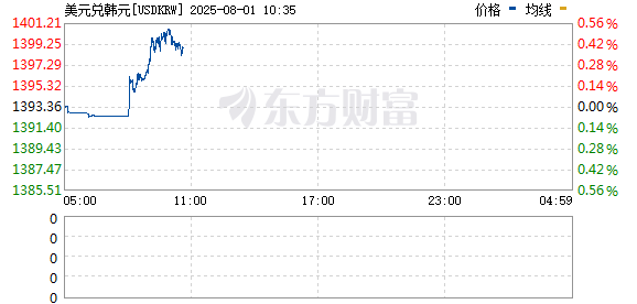 韩元兑美元汇率一度跌破1400关口,为5月19日以来首次。